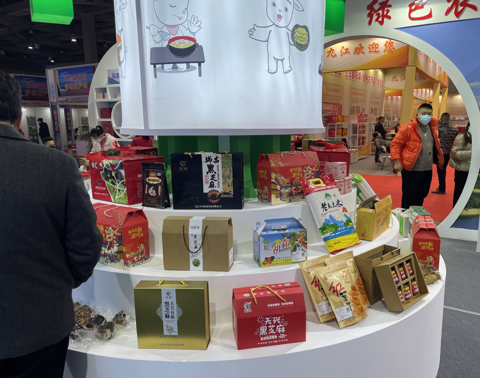 九江天興農(nóng)業(yè)黑芝麻系列產(chǎn)品亮相農(nóng)博會,瑞昌黑芝麻粒粒飽滿、品質(zhì)上乘、健康有機、放心食用。我司出展的有谷配坊黑芝麻丸、有機炒香黑芝麻、天興黑芝麻粉、天興黑芝麻油等。